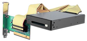 PCI-to-CardBus adapter provides 3.5" front drive with 1 slot.