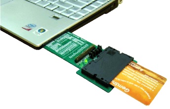 The SC Extender 1.0 is a debug and signal detection tool for Smartcard. It allows a Smartcard to be extended from the host slot for full access to the all of signal pins.