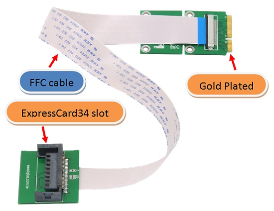 P26S-P26F Extender is a debug andtesttool to extend ExpressCard slot from MiniCard (mPCIe) slot. Design the FFC (Flat Flexible Cable) cable for flexible use.
